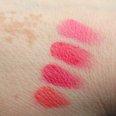 Kate’s recent reviews of FACE Stockholm’s cream blushes first brought the brand to my attention. Before, I’d thought of it as “that brand you see at J. Crew sometimes, the one that makes the orange lipsticks whose testers are always overused and gross.” After reading Kate’s posts, though, I developed a mighty lemming for Milan, a glowing coral-red. I was in New York with my boyfriend earlier this week, and while he met up with some grad-school friends, I excused myself and dashed through the rain to Columbus Circle to do some swatching. Top to bottom: London, Milan, Paris, and Shanghai. Alas, my skin is so winter-dry that even these dewy cream blushes can’t improve its texture. But the colors, friends, the colors: