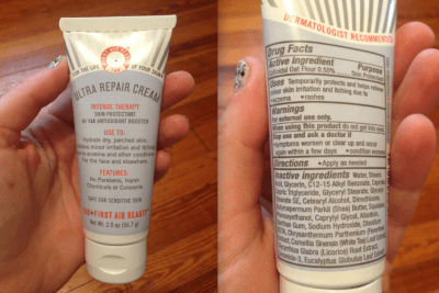 I started out using Lush Celestial Moisturizer as my all-purpose moisturizer, but I soon realized that $24.95 for 1.5 ounces was unsustainable on my budget. So I transferred my affections to Ultra Repair Cream; it’s a delightfully affordable $12 for a 2 oz. squeeze bottle at Sephora. (There’s also a 6 oz. jar for $28, a slightly better deal, but I favor the bottles for their portability and their more sanitary squeeze mechanism.) It turns out that I actually prefer Ultra Repair Cream to Celestial. It’s lighter, despite its heavy-duty-sounding moniker; it melts into the skin instantly; and it has a pleasant herbal scent. At first I thought the scent was rosemary, but now I’m pretty sure that it’s eucalyptus, since eucalyptus appears on the ingredients list and rosemary does not. I don’t care; I still think of delicious rosemary focaccia (which I can never remember how to spell) whenever I put it on. I use this moisturizer every night before bed, as well as during the day when I need some extra moisture and am not going outside immediately.