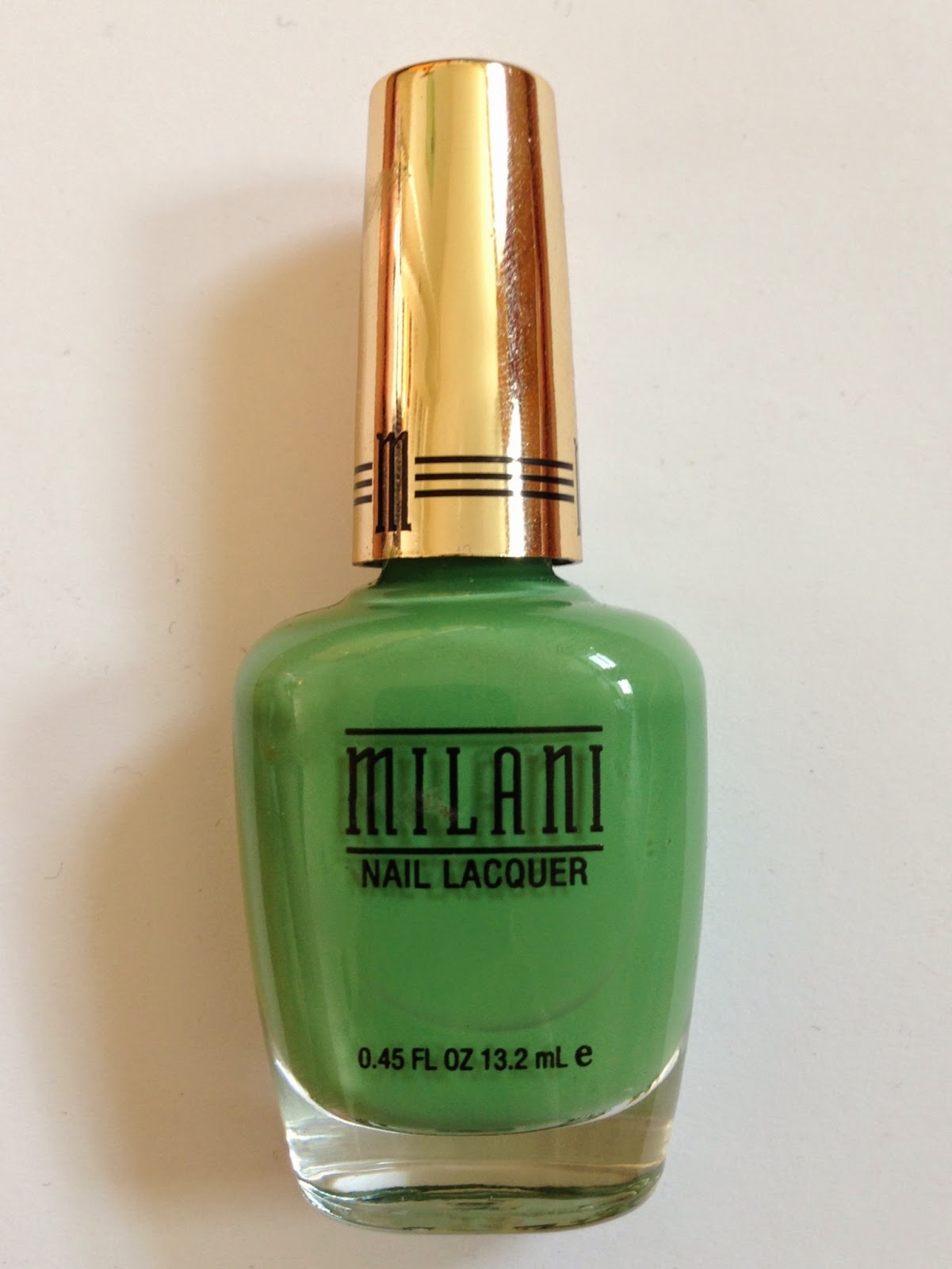 It’s easy for companies to get creative with glitter or shimmer polishes: just toss an unexpected color combination into a clear topcoat and, bam, revolutionary. It takes more skill, in my opinion, to come up with a truly unusual color for a creme polish. I think Milani has done it here. This is not what I’d call sea-green, but it’s a perfect spring green, the green of unfurling young leaves.