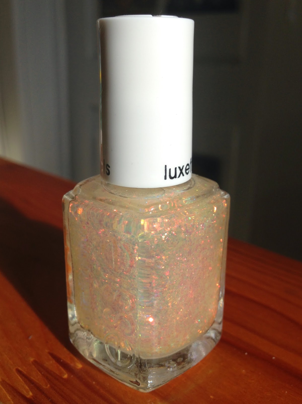 Many glitter topcoats have a Christmas vibe, which makes them awkward to wear after the holidays. But Shine of the Times, though it was released in a Holiday 2012 collection, is a lovely topcoat for spring: an opalescent flakie polish that flashes peach and lime.