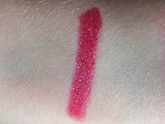 *scream* It's gorgeous! It's like the Ruby Pumps (let's reference a nail polish I don't even own, yay!) of lipsticks…and in a brand I can get here! 😀 The availability of the actual shade is a question mark, but I'm optimistic.I'm actually not much for frosts, either, to be honest, but only because they're usually end up with a whitish cast to them. If it's something that I can get away with calling glitter or metallic instead (like MUFE 15 or Peach Parfait), then I'm OK with it. It's the light pink frosts I can't quite get my head around.I think this one looks fantastic on you, but then I am, of course, biased towards glittery things and bold lipsticks 😉