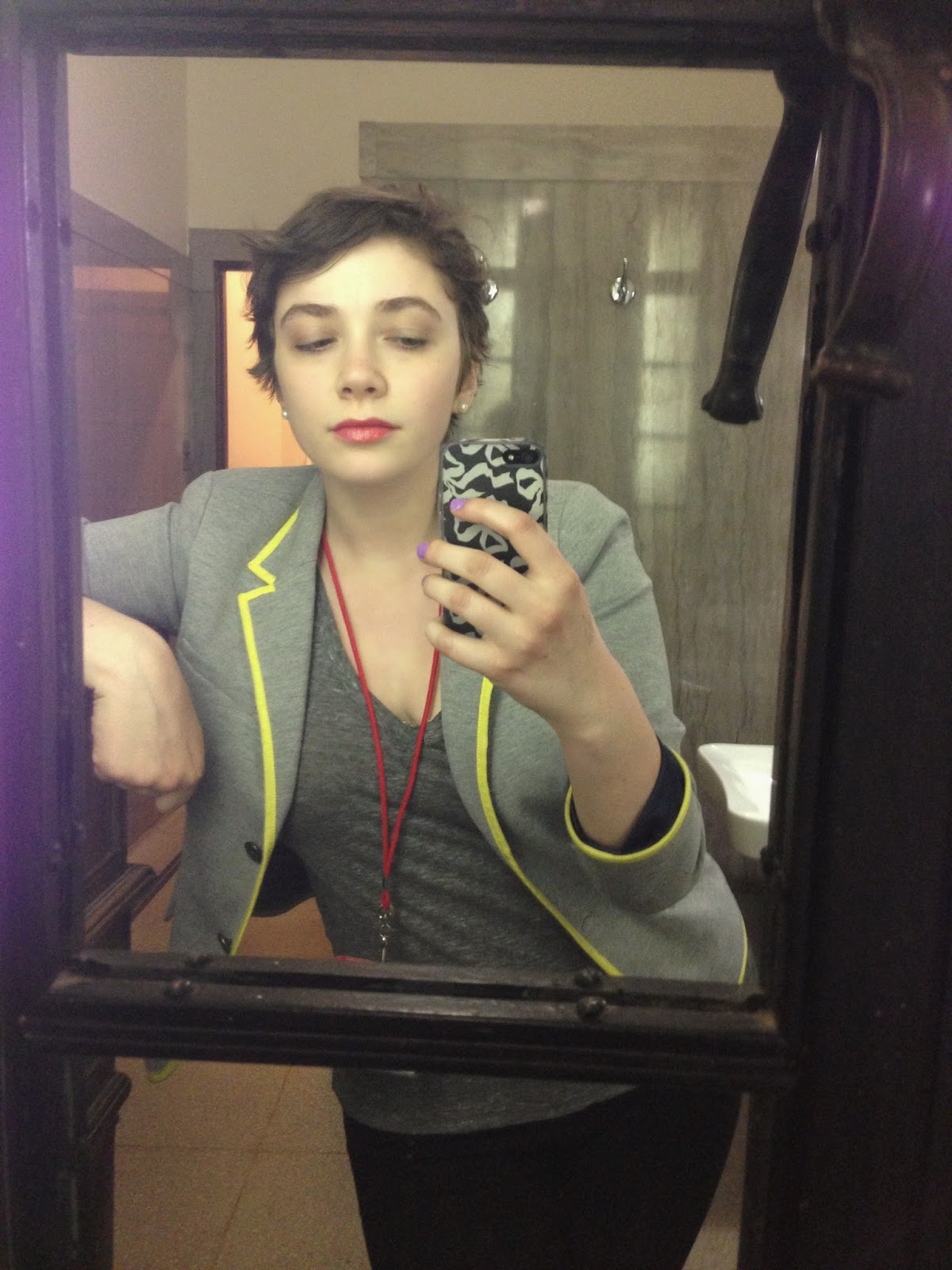 (Before my dissertation seminar last week. I’m wearing NARS Lhasa eyeshadow on my eyes and NYX Butter Gloss in Peach Cobbler on my lips, and displaying my usual deplorable posture. My boyfriend says this blazer makes me look like I’m on the cover of Sgt. Pepper’s Lonely Hearts Club Band, which I can live with.)