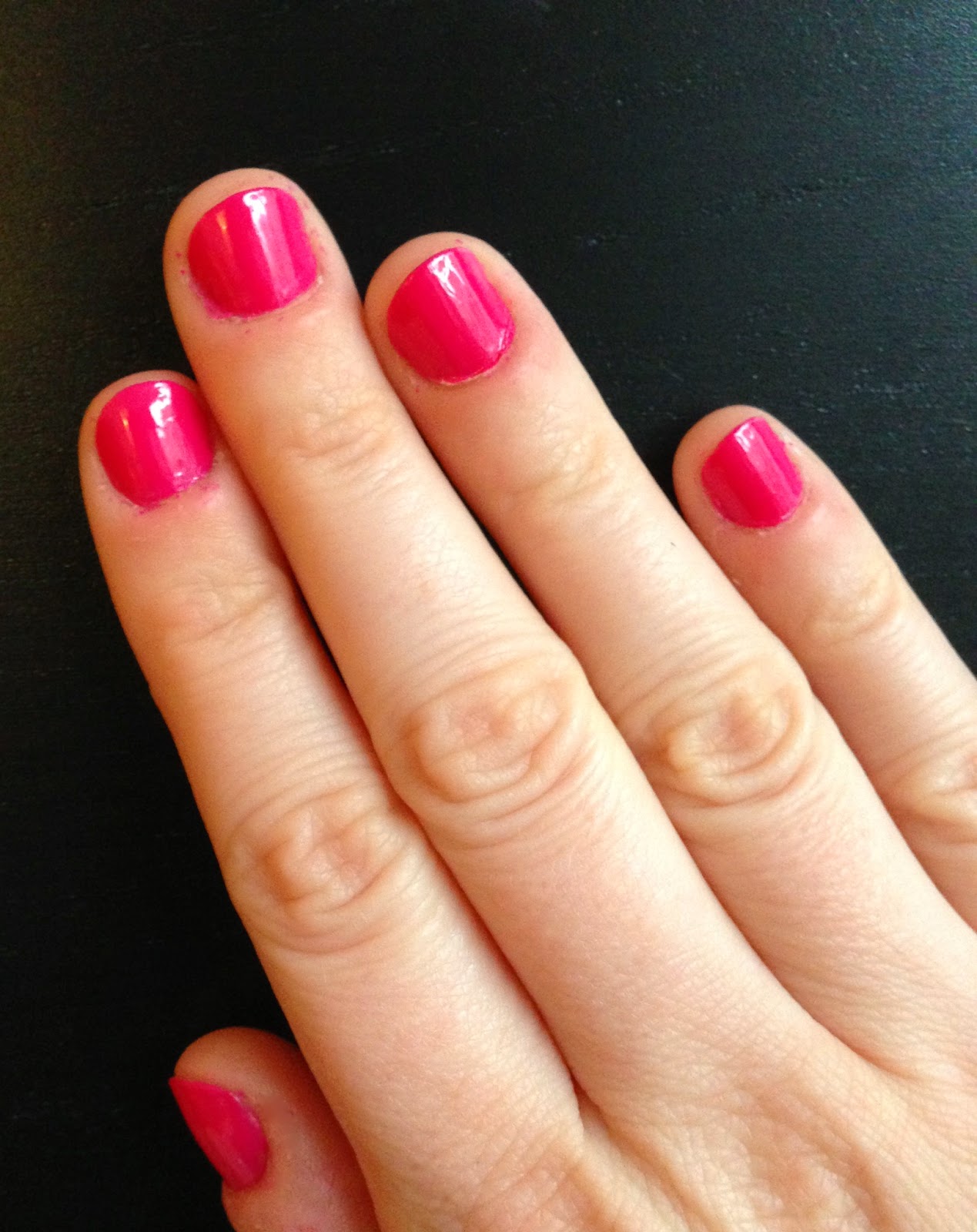 Despite my well-documented love for fuchsia lipsticks, I didn’t own a fuchsia creme nail polish before Shocking Pink. I’ve never been crazy about red and pink polishes; give me a murky green or mannequin nude any day. But fuchsia is one of those staple colors that I felt I should own, so I decided to give Shocking Pink a try.