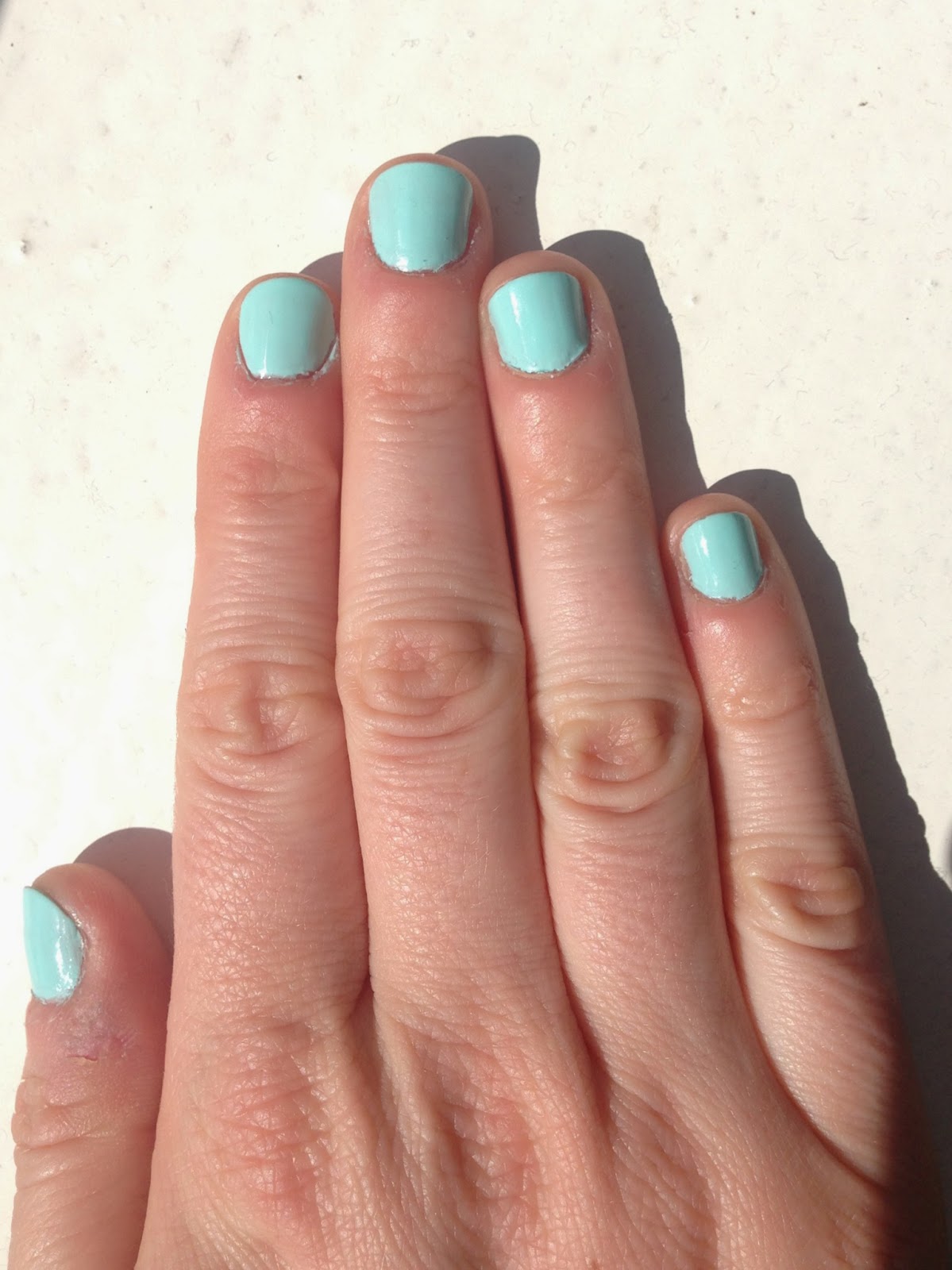 The first one I tested was Sugar Apple, new this spring. I’m 99% sure that Sugar Apple, in name and hue, is a ripoff of Essie’s Mint Candy Apple. But I don’t actually own Mint Candy Apple, despite eyeing it for the past three years, so whatever.