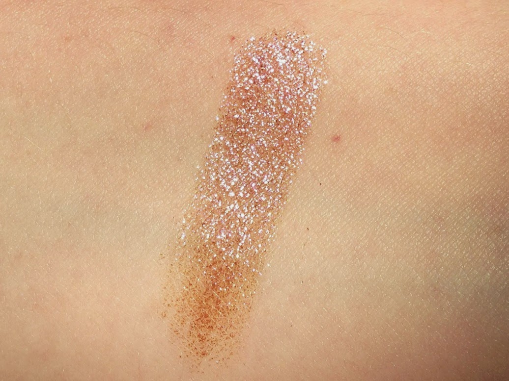 Layered over NYX eyeshadow primer and NARS Lhasa for a more understated gleam: