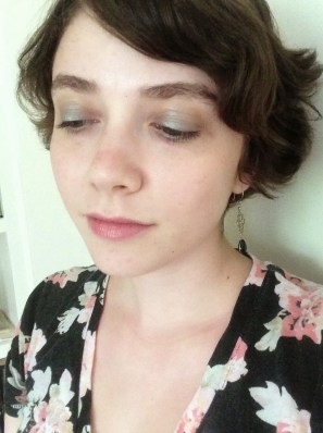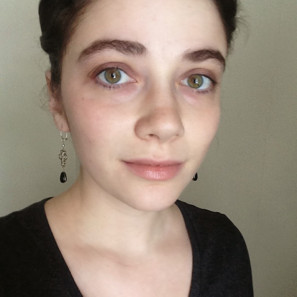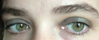 I don’t know how to make this color read anything but “fall/winter,” so I haven’t worn it in several months. Here’s a look from January, though. I’m wearing NARS Mata Hari blush and Maybelline Nude Lust lipstick (?), and I think I’ve used Bad to the Bronze on the inner two-thirds of the lid and Pomegranate Punk on the outer third.