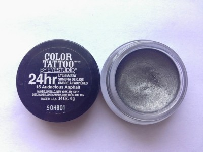 The official name of this product is “Eye Studio Color Tattoo 24HR Cream Gel Eyeshadow,” which…whatever. The 24-hour claim mystifies me, as most people wash their faces more than once every 24 hours. I have, however, fallen asleep in my makeup (I know, I know), and the color does stick around until the next morning. Do with that information what you will. I don’t know what the phrase “cream gel” is supposed to signify, but the formula doesn’t feel or look particularly gel-like to me. It’s a cream eyeshadow, Maybelline. Get over yourselves.