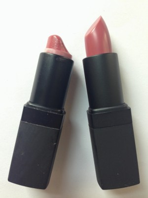 NARS describes Dolce Vita as a “dusty rose,” and that’s exactly what it is: a neutral brownish pink in a sheer, glossy formula. Left, one swipe; right, two swipes.