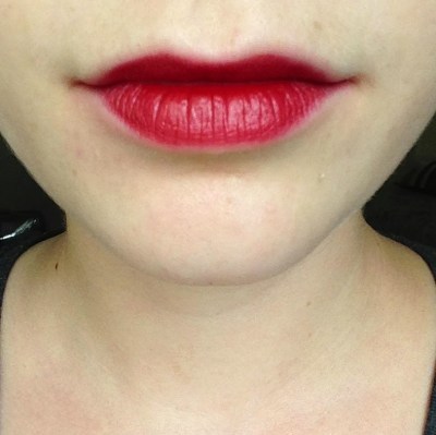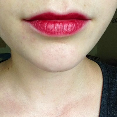 The final result–after applying three layers, I patted the bullet all over my lips to even out the color: