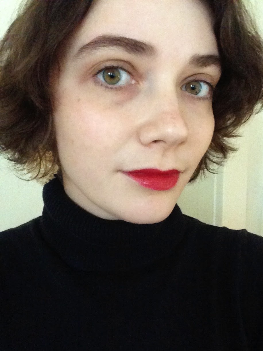 Reason for neglect: The past year has taught me that I’m not a liquid-lipstick person. There’s nothing wrong with Across the Universe; in fact, it’s one of the best-performing lipsticks I own, being lightweight, opaque, long-lasting, and non-drying. I just prefer using traditional lipstick bullets, due perhaps to the satisfaction I get from seeing the product dwindle over time. Also, I was hoping for a proper brick red when I bought Across the Universe, and I thought the color would look warmer and browner on me than it does. After finding NYX Alabama, which was exactly the color I wanted, I let Across the Universe fall by the wayside. It’s a shame, really, because this is a beautiful red with a very slight brick tint, perfect for those days when you mean business. I wore it today with Maybelline Bad to the Bronze on my eyes and a touch of Illamasqua Zygomatic on my cheeks: