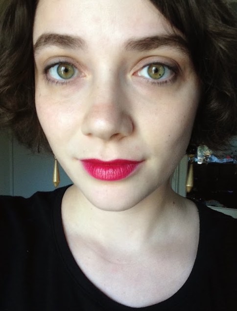 Note: All of these lipsticks feel great on my lips, but Cherries in the Snow and Fire and Ice are by far the most pigmented (thus concealing) and long-lasting. Here I am wearing Cherries in the Snow yesterday, with particularly desiccated lips:
