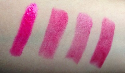 I have several lipsticks that resemble Lollipop, and I’ve swatched them below to shame myself for buying another goddamn fuchsia provide you with some comparisons. Not only are these similar pinks, they’re also similar Revlon pinks. Left to right: Colorburst Gloss in Adorned, Colorburst Lipstick in Fuchsia, Lip Butter in Lollipop, Lip Butter in Raspberry Pie.
