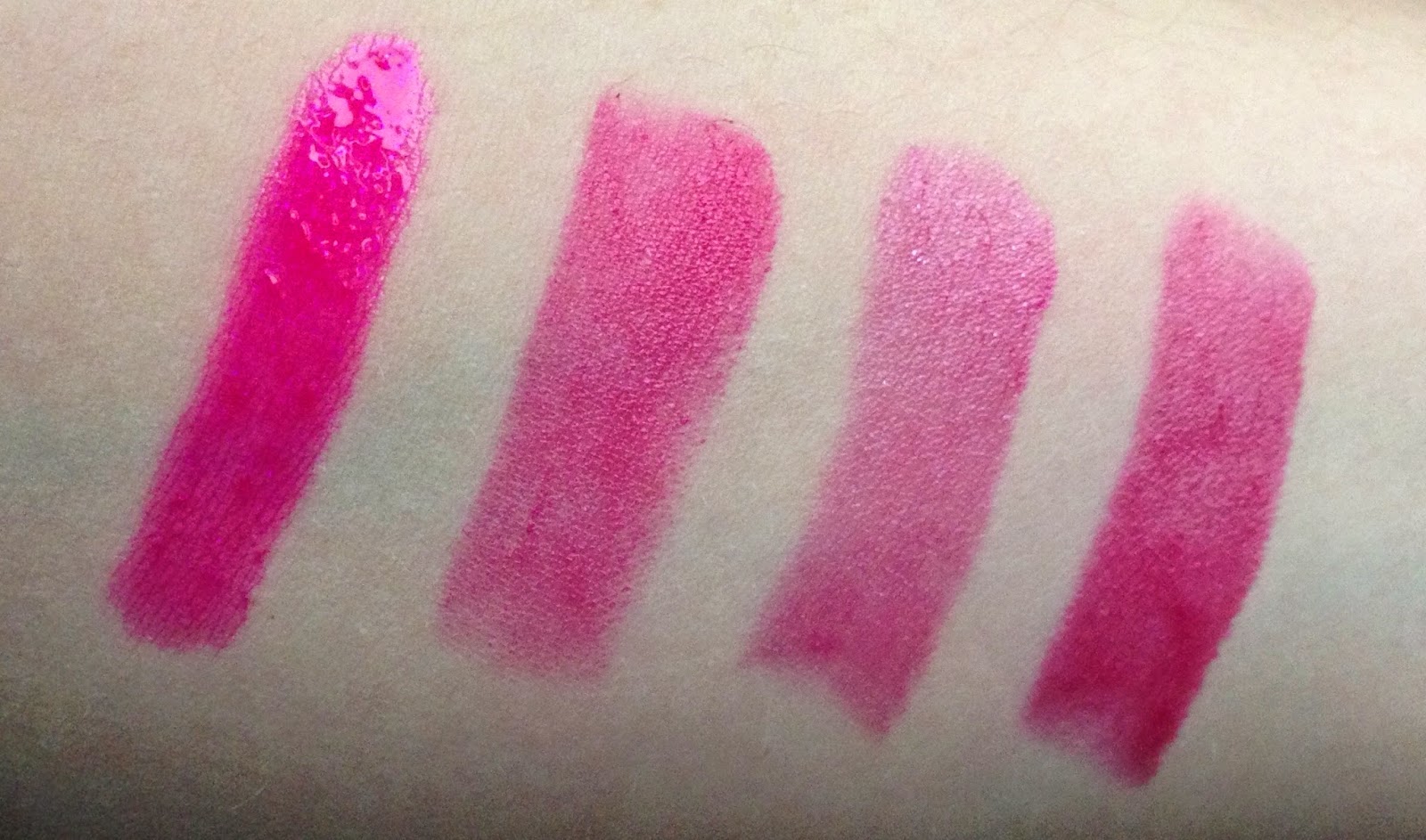 I have several lipsticks that resemble Lollipop, and I’ve swatched them below to shame myself for buying another goddamn fuchsia provide you with some comparisons. Not only are these similar pinks, they’re also similar Revlon pinks. Left to right: Colorburst Gloss in Adorned, Colorburst Lipstick in Fuchsia, Lip Butter in Lollipop, Lip Butter in Raspberry Pie.