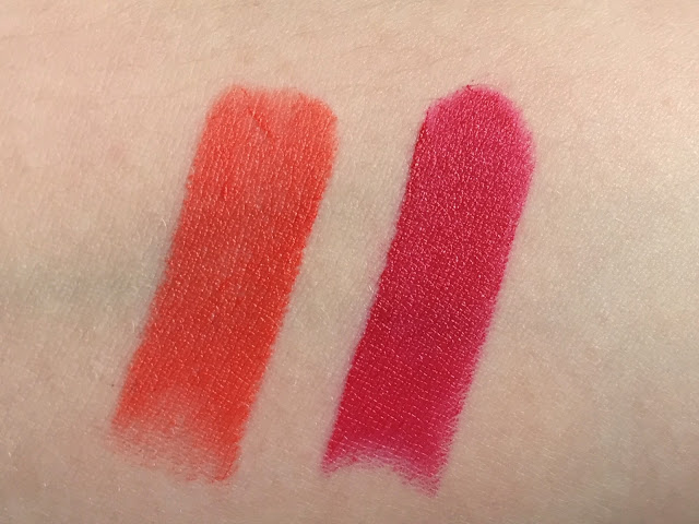 Your concern about the packaging isn't vain, I don't think. First of all, the bits of lipstick that are getting smeared all over the cap represent WASTE. Maybe wastage isn't as big a deal in a $1.99 lippie as a Nars one (hello there gloss pencils that ooze product when I sharpen them), but it's still undesirable. I love both those colours on you for different reasons: the red just perfectly suits your complexion and the Orange plays really nicely with tones in your eyes.