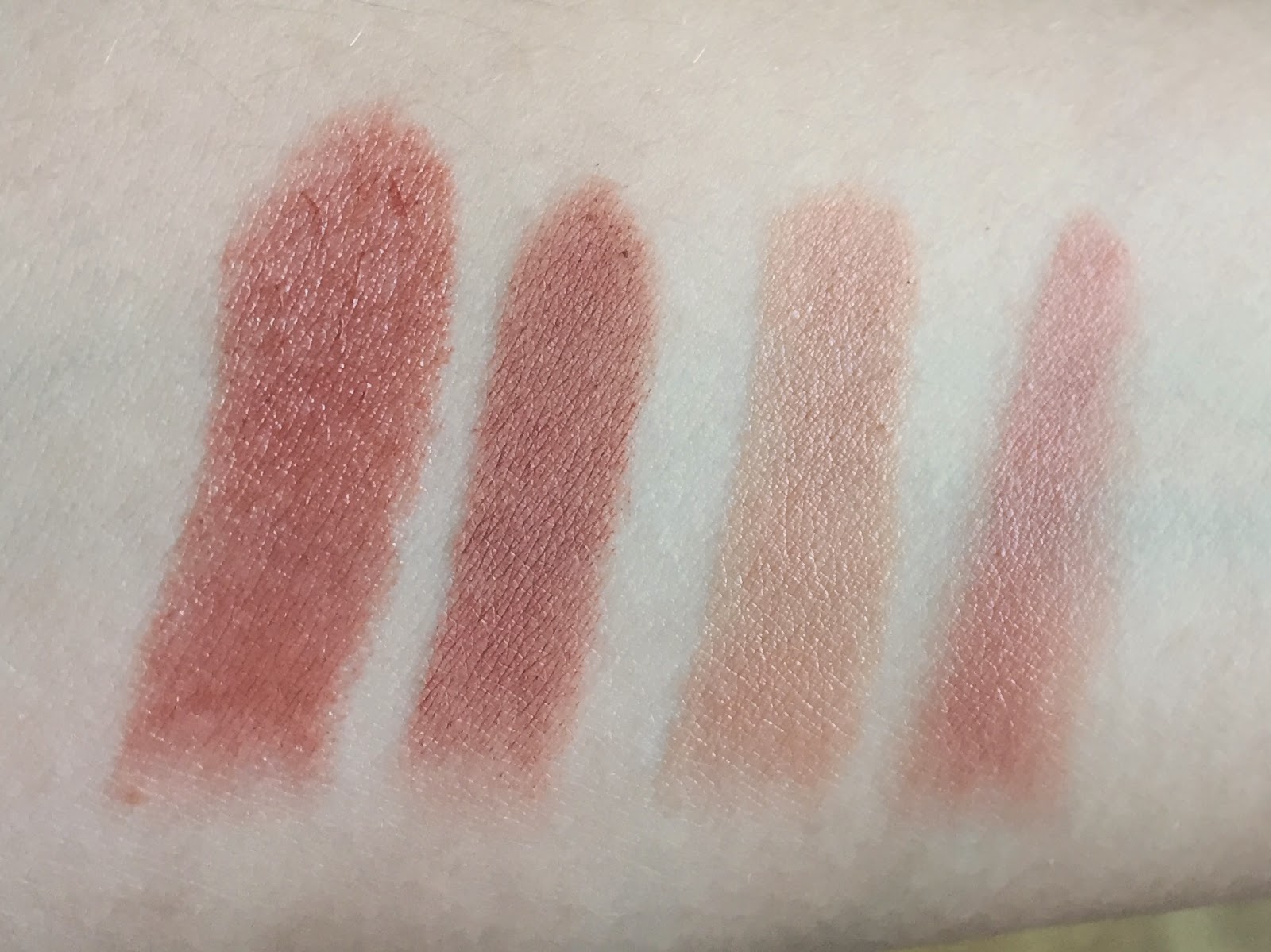 I swatched Matte Naked with some of my other nudes and MLBBs: left to right, Revlon Pink Truffle, Matte Naked, Maybelline Nude Lust, and L’Oreal Fairest Nude.