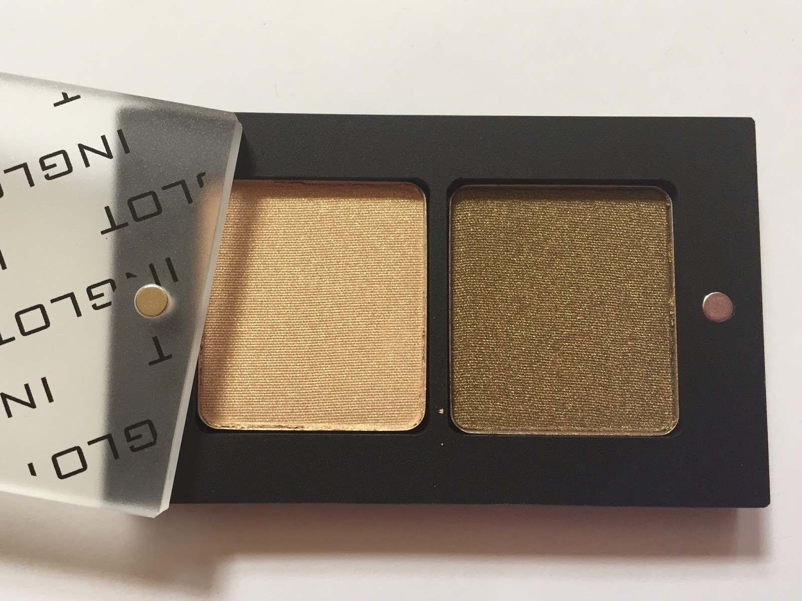 I’m very pleased with the Inglot duo, which comprises a pale gold and a dark greenish gold (it looks olive here, but it’s much yellower on the eyes). Expect a review soon!