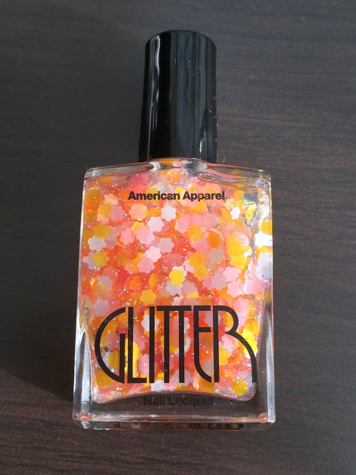 Funny! I've never tried to wrangle giant glitter, myself. In fact, I don't really wear the many regular-size glitters I have, either. But they do look nice in the bottle.It also looks to me like there is orange in that bottle! Is it where the pink and yellow flowers overlap? If I were just to glance at the photo, I'd pick out orange as the dominant color. That's so strange!