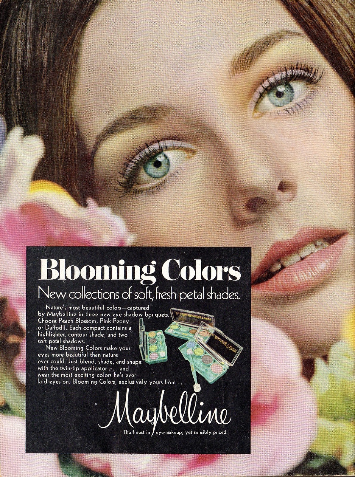 By 1969, the black liner had vanished from the lower lashline, but pastel still reigned on the mobile lids: