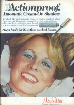 A solid swath of teal also looks a tad ’70s, as evidenced by this Maybelline ad from 1978 (source):