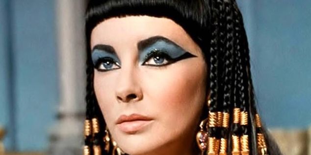 I can’t end a post on ’60s-inspired teal makeup without mentioning Elizabeth Taylor in Cleopatra (1963), a film that I’m given to understand was a life-changing experience for a generation of heterosexual preteen males. These days we’d identify Taylor’s makeup as a decidedly man-repellent look, but I guess people in the ’60s were inured to bold eyeliner: