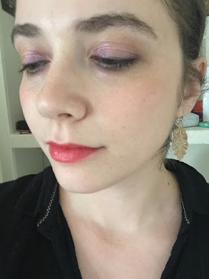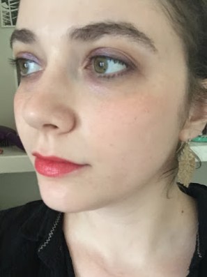 More color than I usually wear at once, but I like it! Purple and orange harmonize surprisingly well together. For some reason, though, wearing both warm and cool tones in the same look makes me feel more “made up” than wearing one temperature all over my face.
