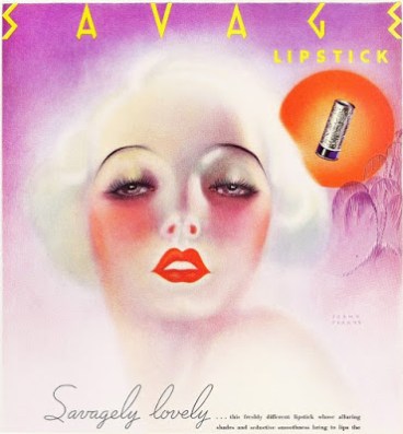 In putting together a look with Candy Apple, I think I was inspired subconsciously by this 1935 lipstick ad, which I pinned some time ago. Talk about strobing: