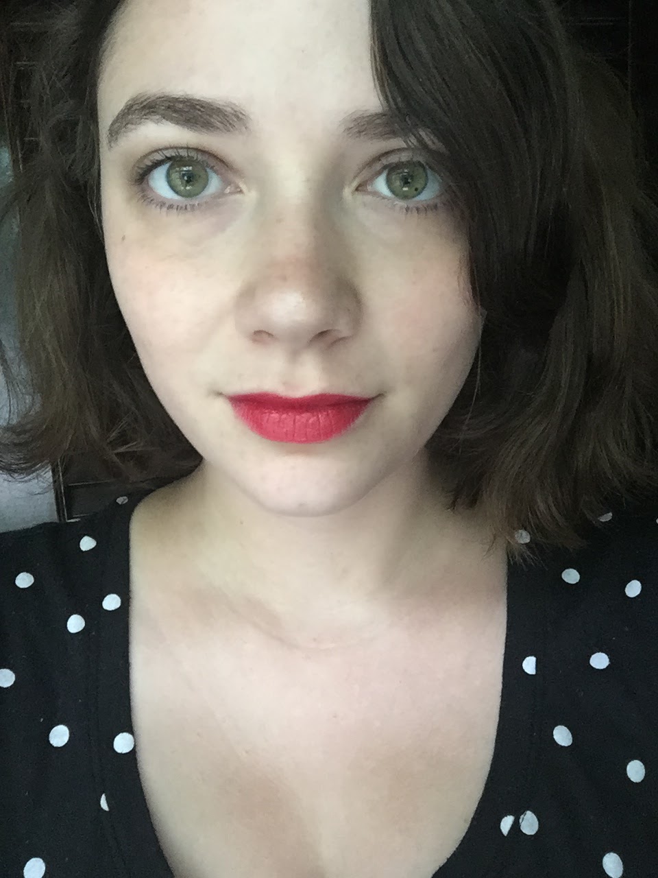 This is one of those dangerous Platonic ideals. I’ve spent a lot of time putting off my actual responsibilities by scouring the Internet for the epitome of cherry-red gorgeousness. Basically, I want a non-matte lipstick redder than Revlon Cherries in the Snow but pinker than Maybelline On Fire Red, which looks like this on me: