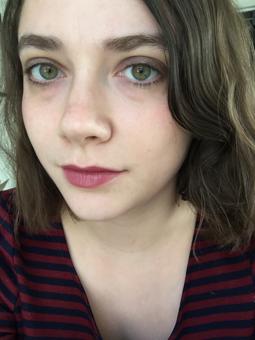 Not all of these stay pristine through 50 minutes of conversation, but if they do fade, they fade evenly and unobtrusively. Note also that I’m a little more playful with my makeup when I’m not the one doing the instruction. If I’m attending an academic talk, I might wear a bright color like NARS Angela or a fairly vampy one like Topshop Get Me Bodied, or I might do something interesting with my eye makeup instead. There’s something I like about having mild rules and restrictions placed on the makeup I wear every day; it makes me more attuned to shading and placement and less reliant on a simple bold lip or eye. Here’s a characteristic teaching face from last semester, feat. Rapture: