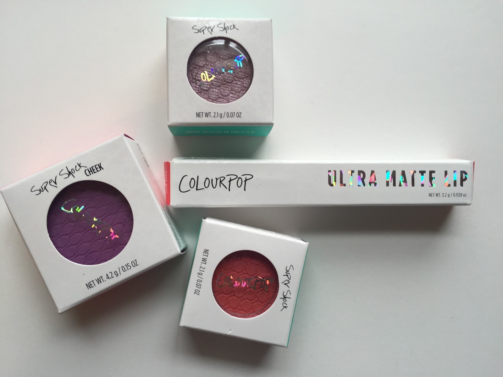 By the way, sorry I haven’t been around much; the semester is already busy and we’re only three weeks in. But I am playing with some new ColourPop makeup at the moment, so expect reviews soon! Here’s my haul, arranged in a fashion that I only just realized might be a tad suggestive: