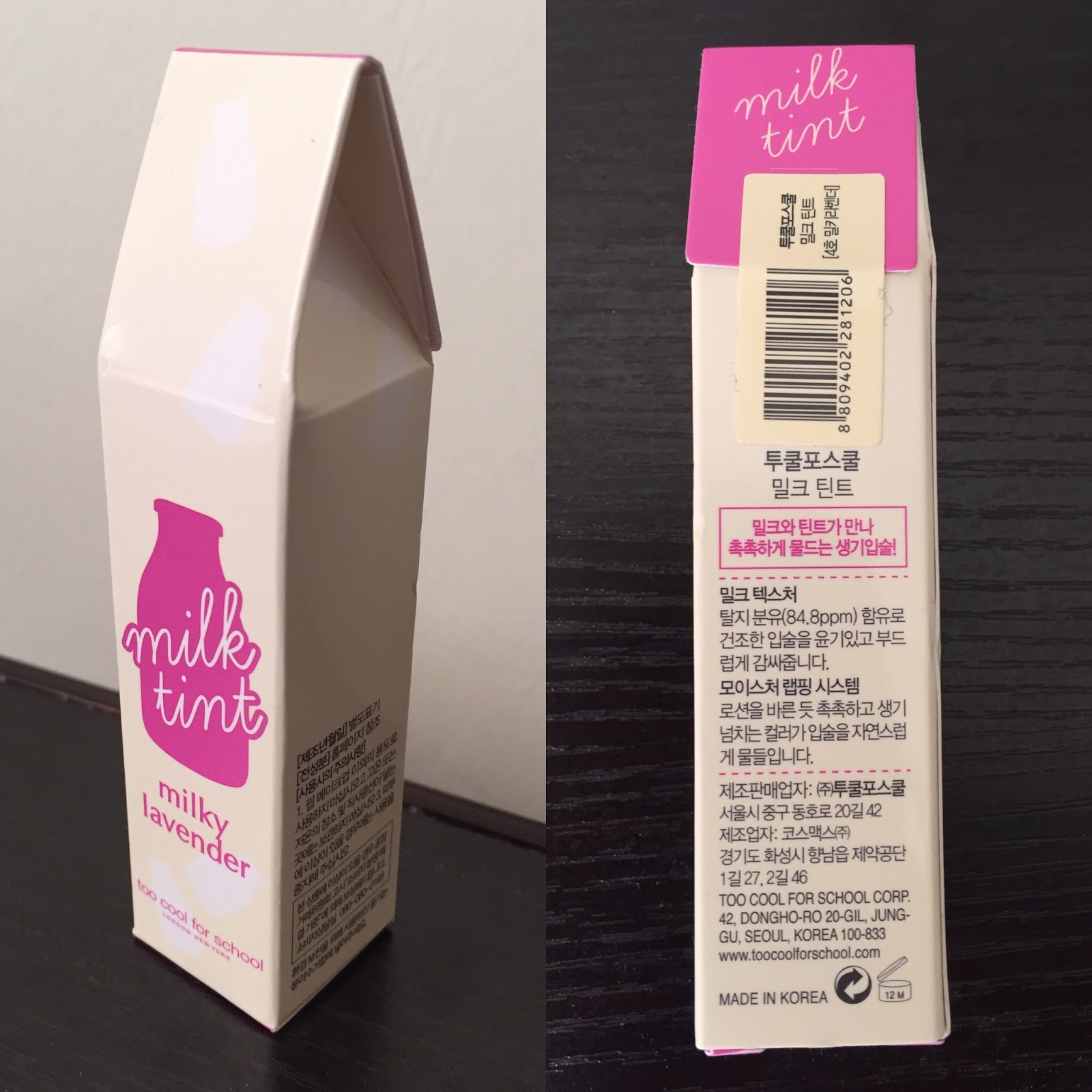 I won’t lie, I bought Milky Lavender mainly for the packaging. Not only does the cardboard box look like a milk carton, but the tint itself has a milk bottle on it: