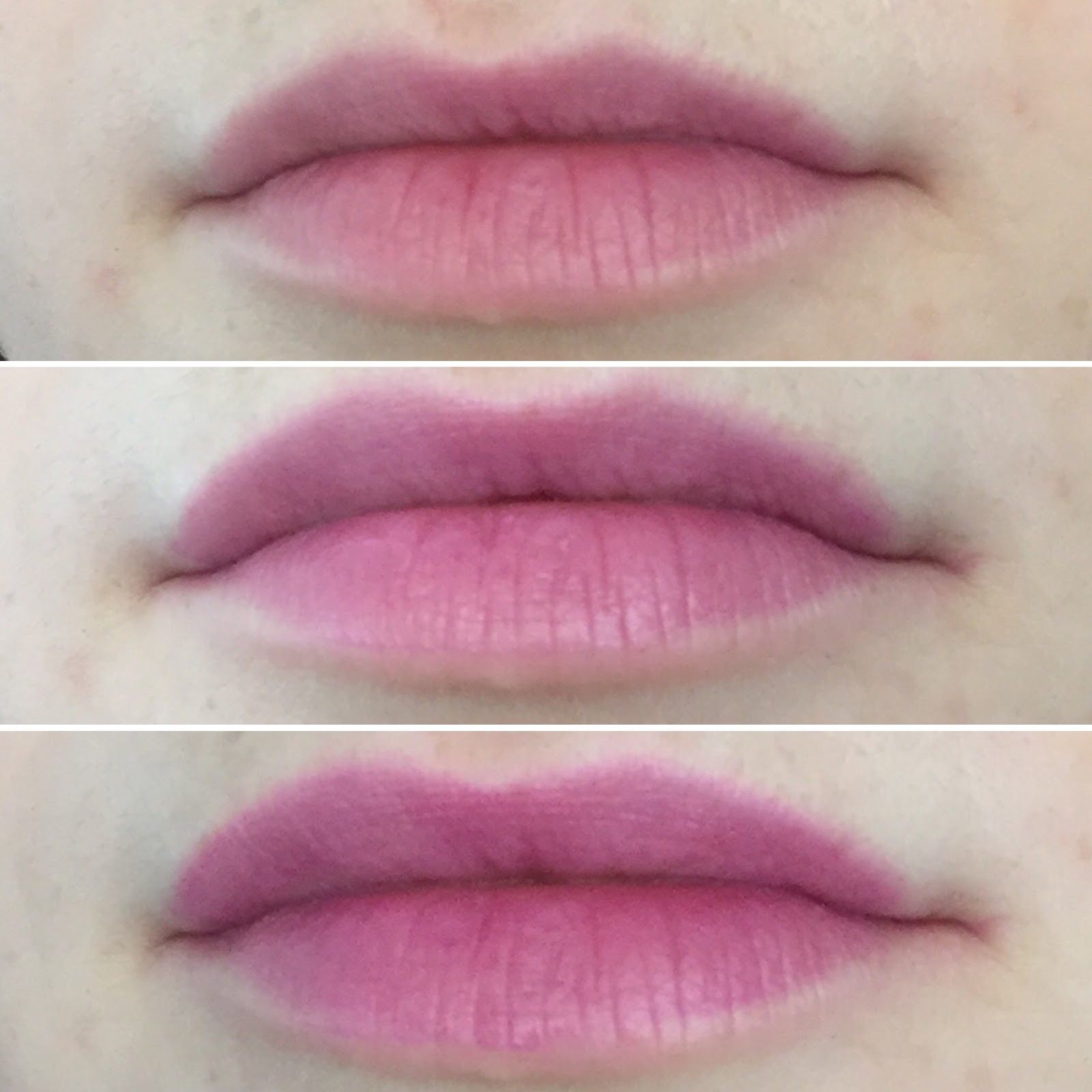 And here we have one, two, and three coats of Milky Lavender, all freshly applied:
