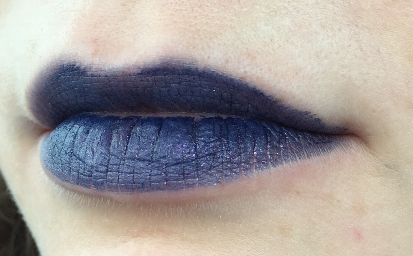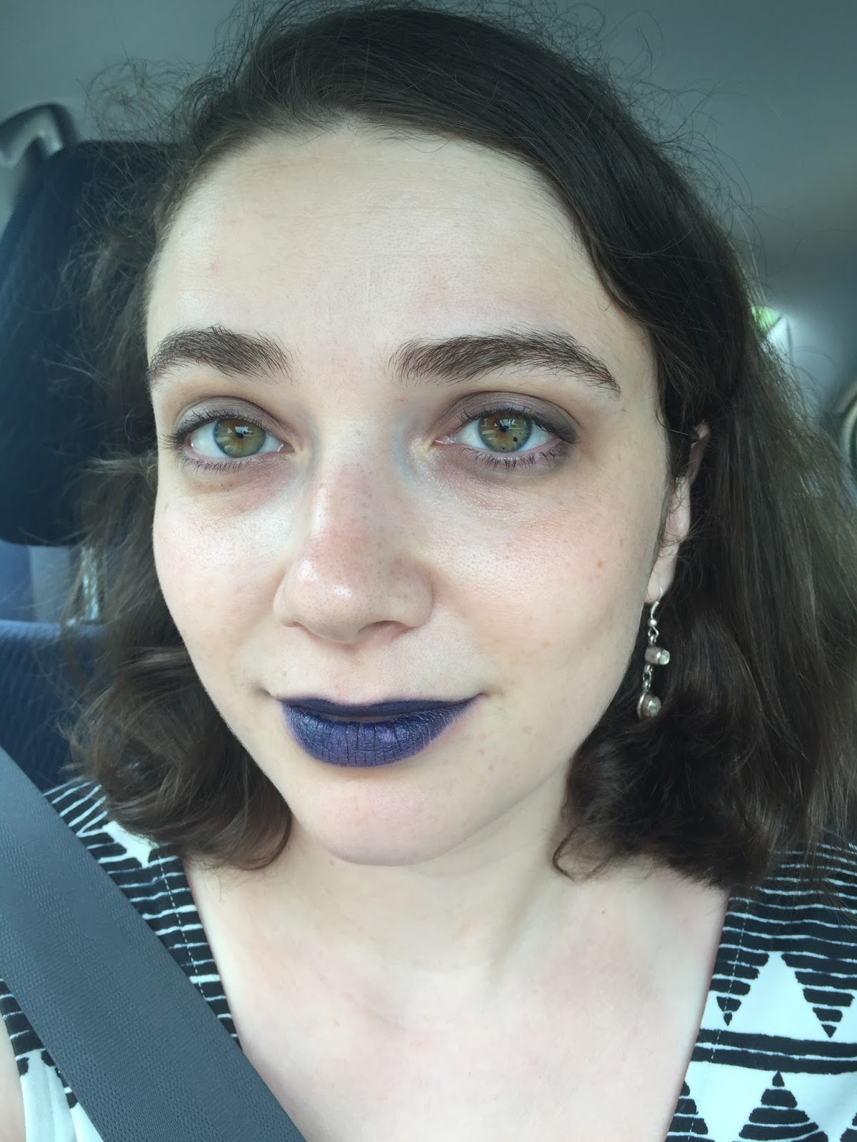 Navy is one of my most flattering colors, so it’s about time I embraced it in lipstick form. I was surprised to find that I didn’t feel as weird or conspicuous in Poe as I do in NYX Stone Fox, but maybe that’s because dark blue lipstick has been entering the mainstream recently. I can think of quite a few non-indie blues off the top of my head: MAC Matte Royal, Urban Decay Heroine, Kat Von D Poe and Echo, Bite Squid Ink, the two blues in Maybelline’s Loaded Bolds collection, and three of the new NYX Liquid Suedes. I think I’ll have to pick up a navy lipstick when my no-buy ends in a few days. I’m leaning toward NYX Liquid Suede in Foul Mouth, because I know I like the formula and I don’t want to pay too much for such a weird lip color, but I’d welcome suggestions!