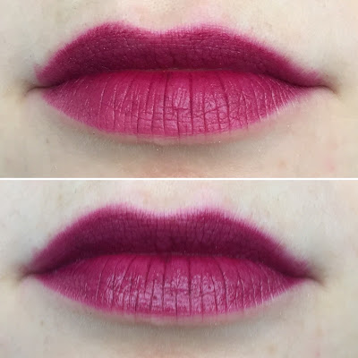 NR makes Rebel darker and more purple, but also patchier and more feathery. The amount of slip in the Givenchy formula makes any lipstick under it slippery, too. It did slightly better over a matte nude, Milani Matte Naked: