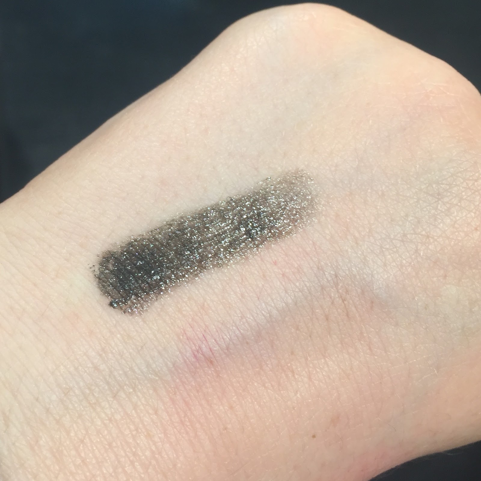Here’s Noir Révélateur swatched on my arm, with one pass at left and four or five at right. As you can see, it swatches as a grayish plum instead of a true gray or black: