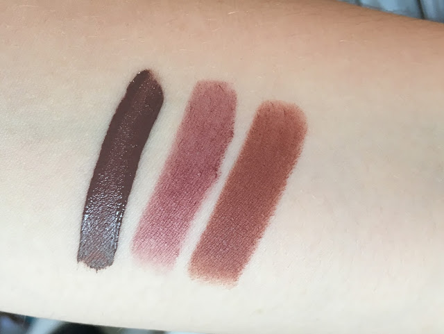 | L-R: NYX Liquid Suede in Brooklyn Thorn, Kiko 319, MAC Whirl. |