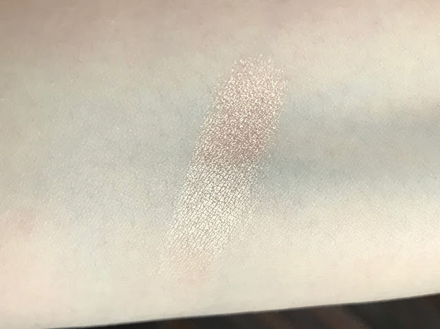 Here it is swatched with a finger on my arm. The formula has a stiffer, more powdery texture than I expected, but it’s still workable.