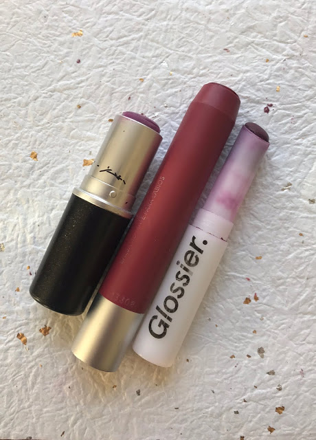 I wear plum lipsticks less than I used to, but that remains one of my favorite categories too. I like that I can buy a plum or berry lipstick sight unseen and count on it to be flattering, which is more than I can say for a lot of colors!If I did a REALLY ruthless destash and kept only the lipsticks I've worn more than a couple of times in the past year, I'd probably be around 35-40, but I just can't bring myself to do that.
