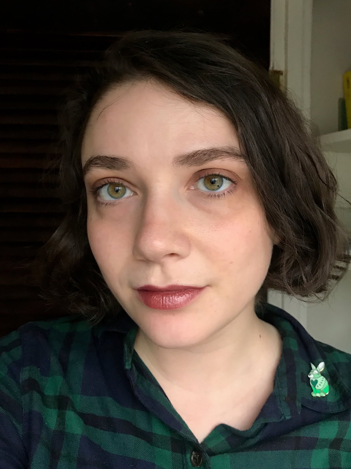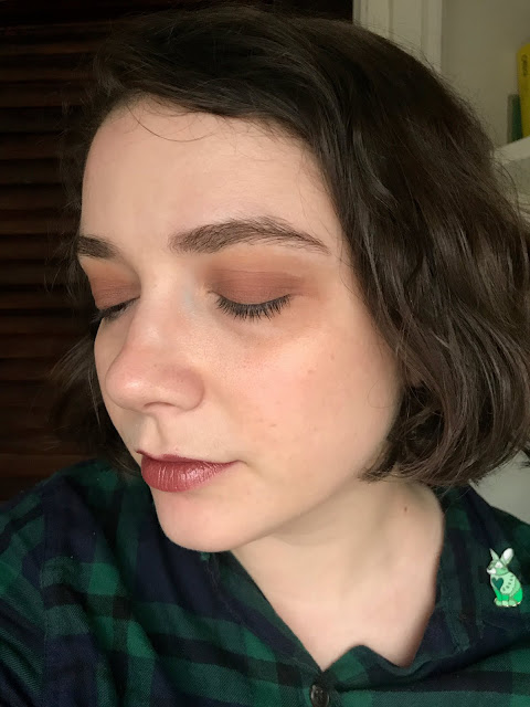 And a full face, with mascara on both eyes (again, no eyeliner, just shadow). My blush is Tarte Paaarty, my highlight is Glossier Haloscope in Quartz, and my lipstick is Urban Decay Amulet.