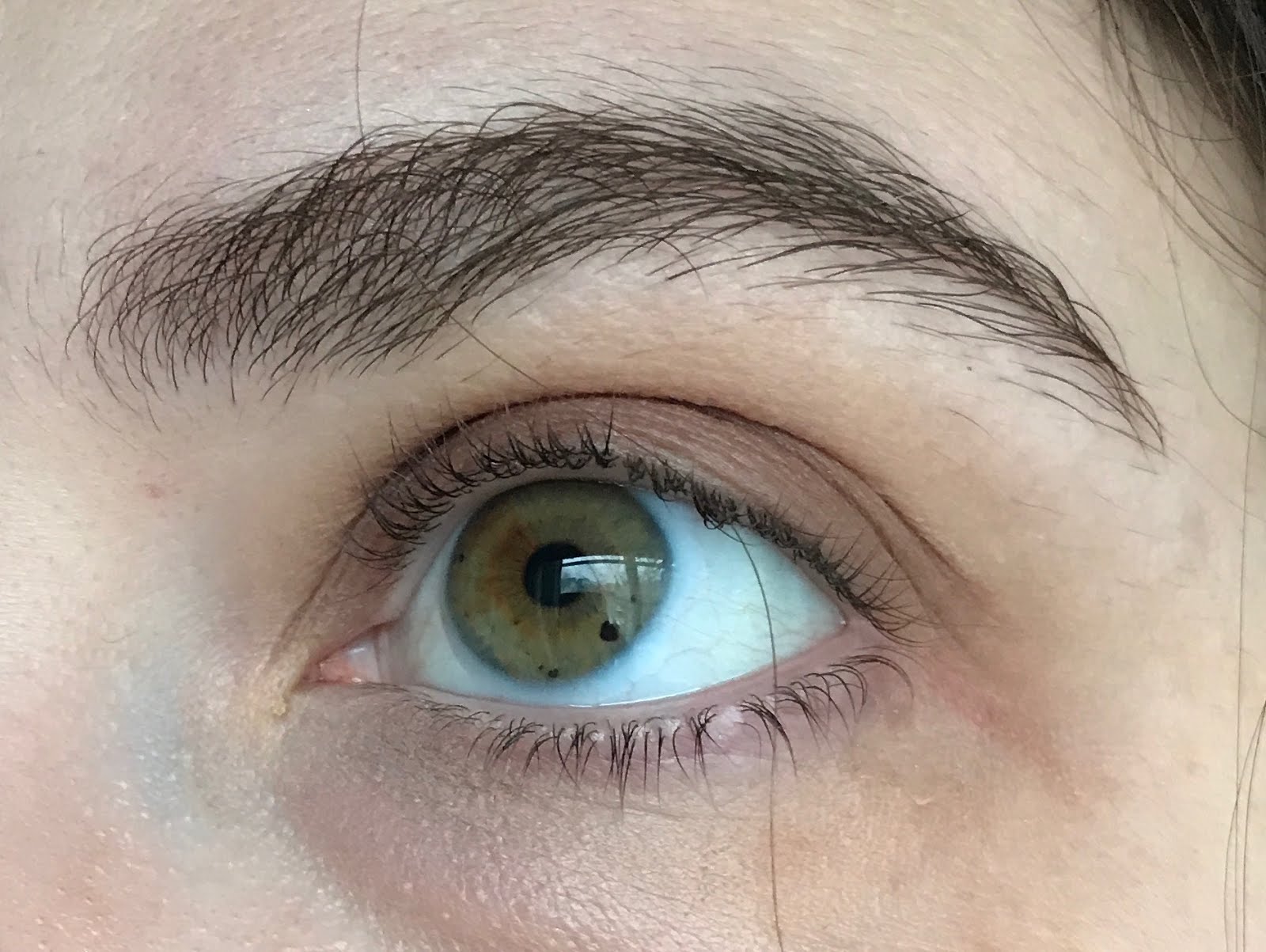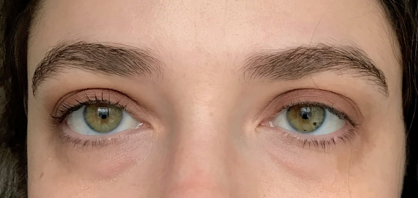 Here are my eyes with mascara (left) and without. As you can see, I have fairly straight lashes, and the mascara helps them curl up a little. The only other products I’m wearing in these photos are Glossier Boy Brow in Clear, ABH eyeshadow in Antique Bronze, and NARS Radiant Creamy Concealer in Vanilla.