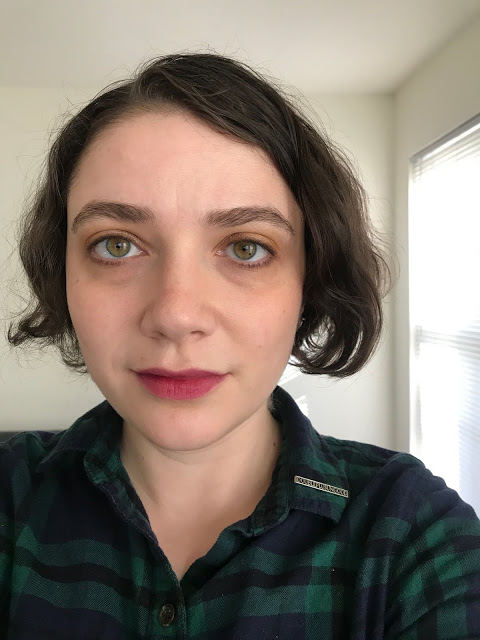 Unsurprisingly, I find Jam more flattering on my cool olive complexion. Here I am wearing three layers: