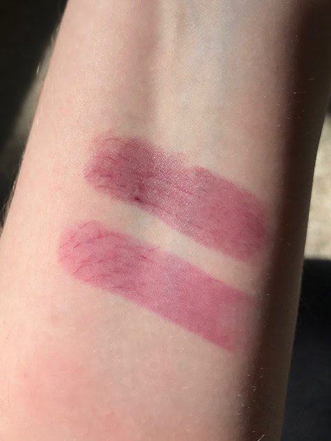 I was curious how Jam compared to my other sheer plum lipstick, Urban Decay Seismic. It turns out that Seismic is darker and cooler-toned than Jam. Needless to say, it’s also shinier and more moisturizing (it has a very fine microshimmer that doesn’t show up on the lips). Here’s Seismic (above) and Jam (below), in direct sunlight: