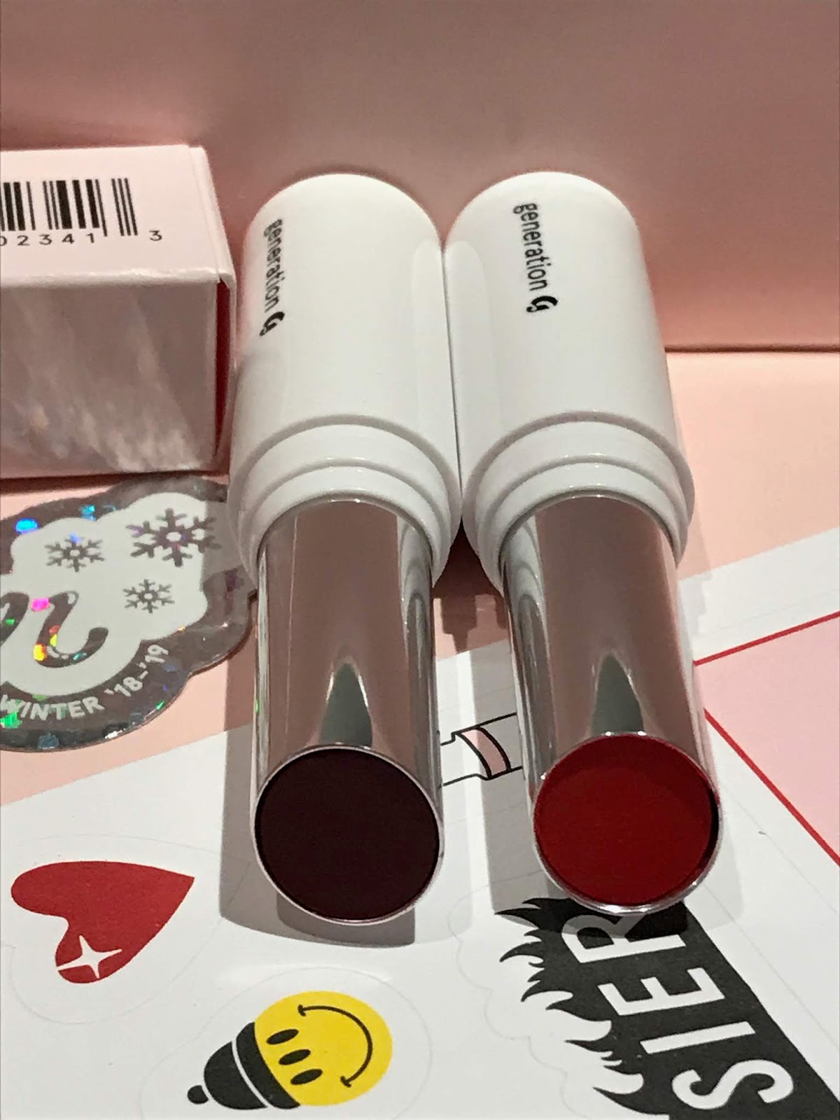 For my full assessment of the first-generation Gen G formula, check the blog posts I’ve linked above. The tl;dr version is that the formula was good: it faded quickly, which was only to be expected, but it gave an easy, attractive matte tint effect without drying out my lips. However, the size and price point were shameful. $18 for 1.1 grams? That’s about 1/3 the size of a normal full-size lipstick! And the bullets of both Jam and Cake popped out of their tubes within a few weeks, so I had to be extra-careful when taking off the caps, lest the lipsticks fly onto the floor and get a dust bath.