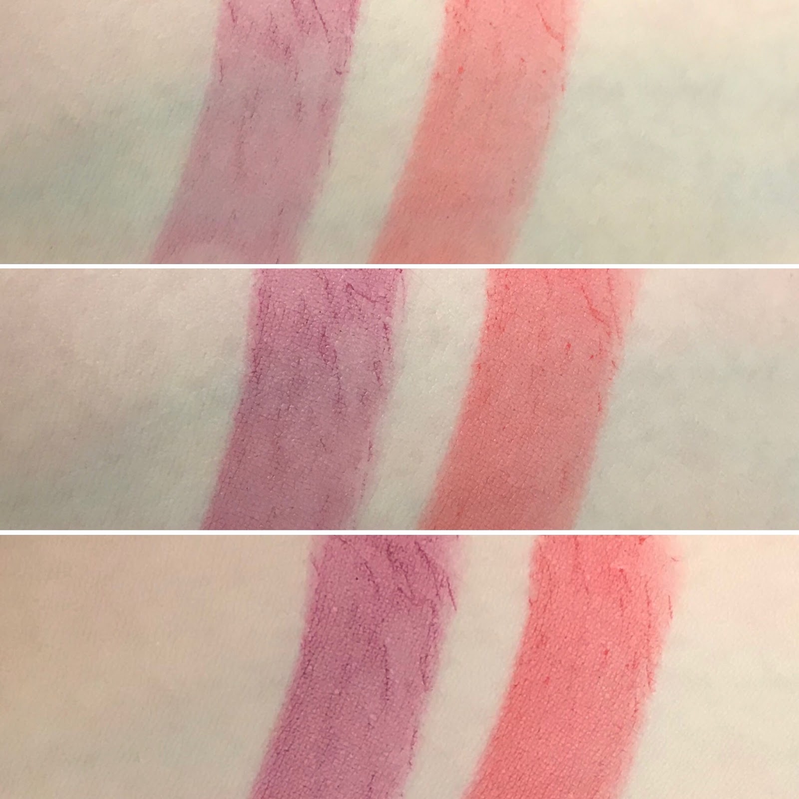 The new Gen Gs seem to be the most pigmented of the three generations. My old Jam never got even close to opaque, no matter how many layers I swiped on. My new Jam delivers a respectable (though still sheer) amount of color after just one swipe. Below, Jam and Zip swatched with one, two, and three layers: