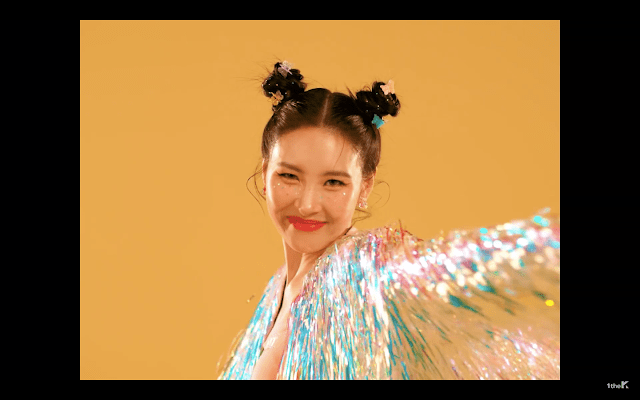 My insatiable perfectly normal daily consumption of k-pop makes me aware not only of cool new songs but also of microtrends in the k-beauty world. Over the past year, I’ve noticed the presence of chunky holographic glitter in a number of k-pop looks, so I was excited to use Phantasm to copy a couple of them. In her most recent music video, the soloist Sunmi (formerly of the Wonder Girls) wears glitter in a freckle pattern under her eyes: