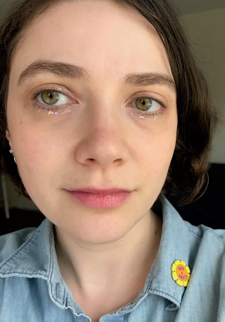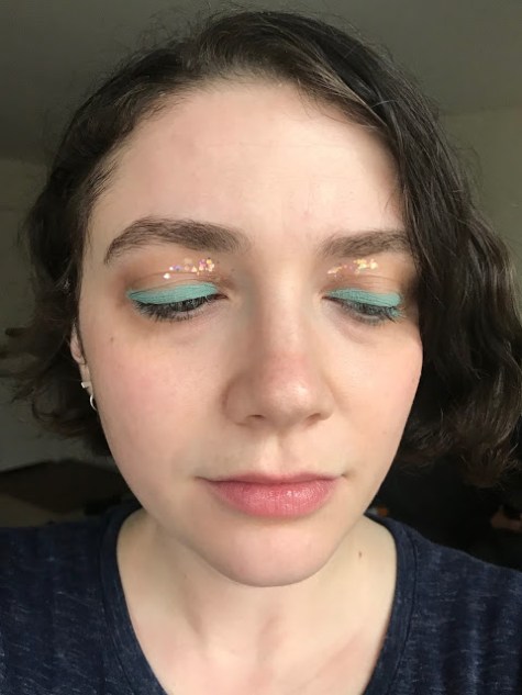 Finally, I copied a look from the music video for one of the best k-pop songs of 2018, Apink’s “I’m So Sick.” Like Sunmi’s video, “I’m So Sick” uses glitter as a tool of dramatic irony, highlighting just how not fine a seemingly festive and glamorous situation is.