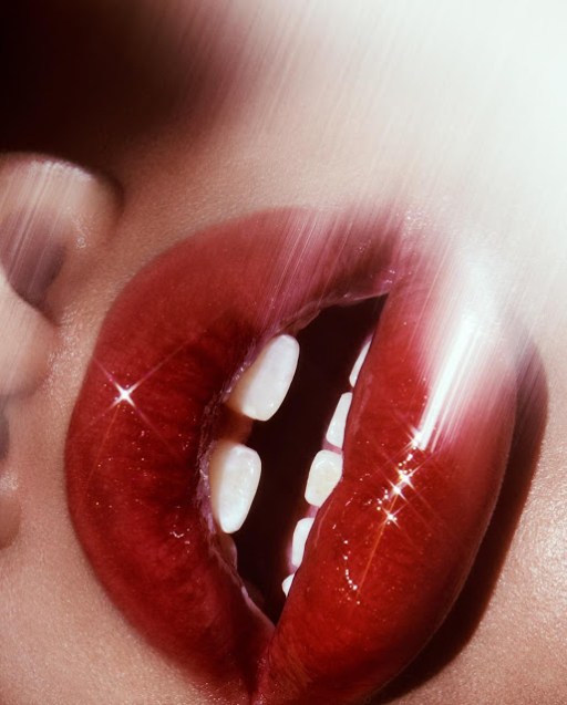 First, though, let’s talk about the branding and overall aesthetic of the new brand (or sub-brand, or whatever). Glossier Play’s packaging is recognizably “Glossier,” i.e. minimalist, but with notable differences: cream plastic instead of white; a ’70s-esque serif font instead of the usual sloping sans-serif one. (You can see both fonts in action on the sticker above.) The font’s evocation of the ’70s is no mistake: Glossier Play’s aesthetic is clearly influenced by the era of Guy Bourdin and Studio 54, as the promotional images make clear: