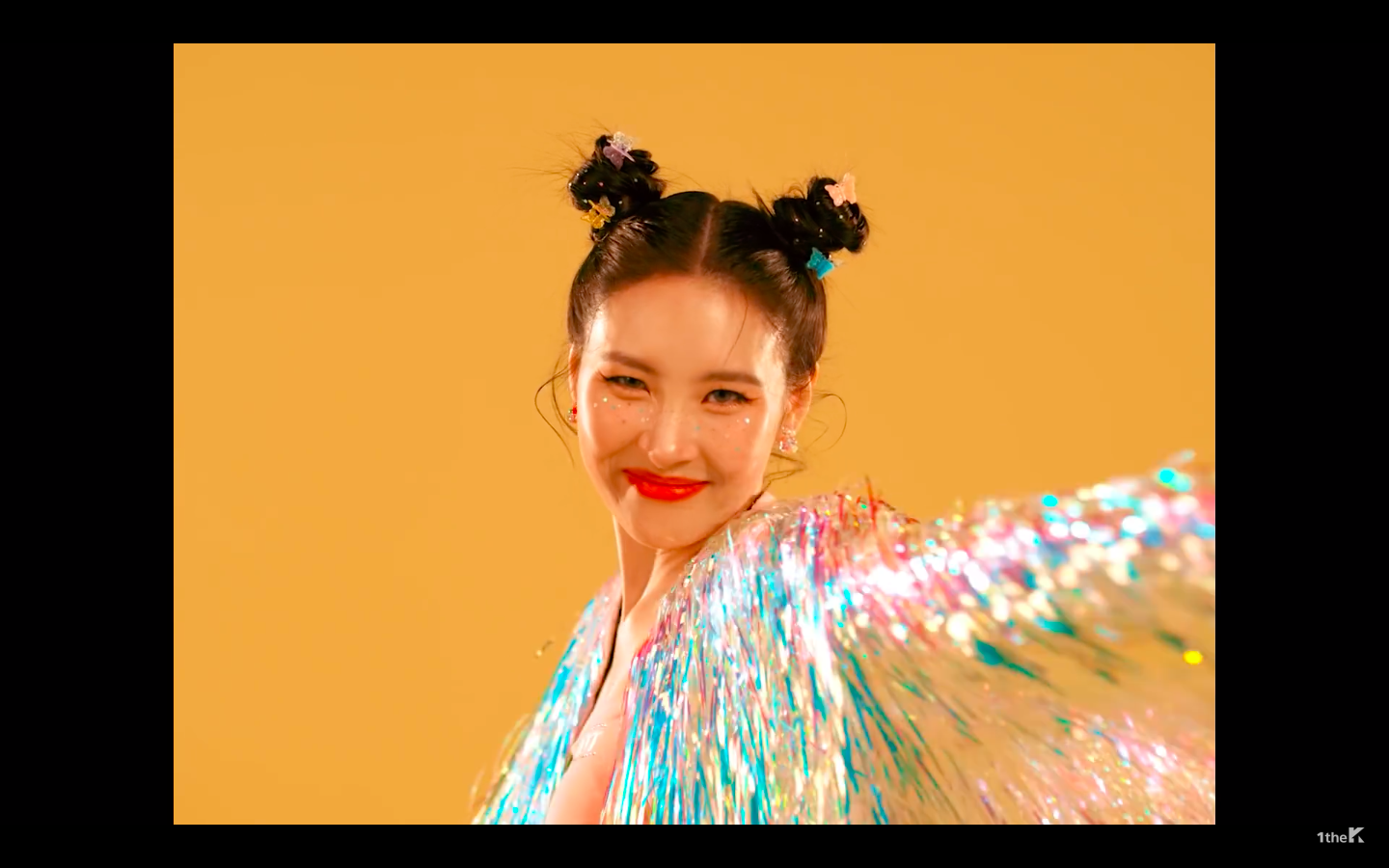My insatiable perfectly normal daily consumption of k-pop makes me aware not only of cool new songs but also of microtrends in the k-beauty world. Over the past year, I’ve noticed the presence of chunky holographic glitter in a number of k-pop looks, so I was excited to use Phantasm to copy a couple of them. In her most recent music video, the soloist Sunmi (formerly of the Wonder Girls) wears glitter in a freckle pattern under her eyes: