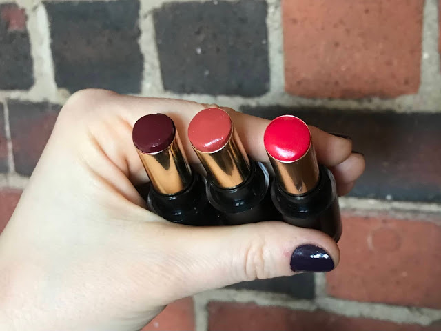 5. Revlon Super Lustrous Glass Shine Lipsticks in Glaring Coral, Glassy Ruby, and Fire & Ice (May-September)
