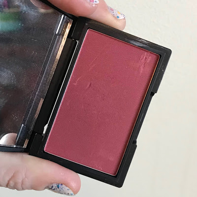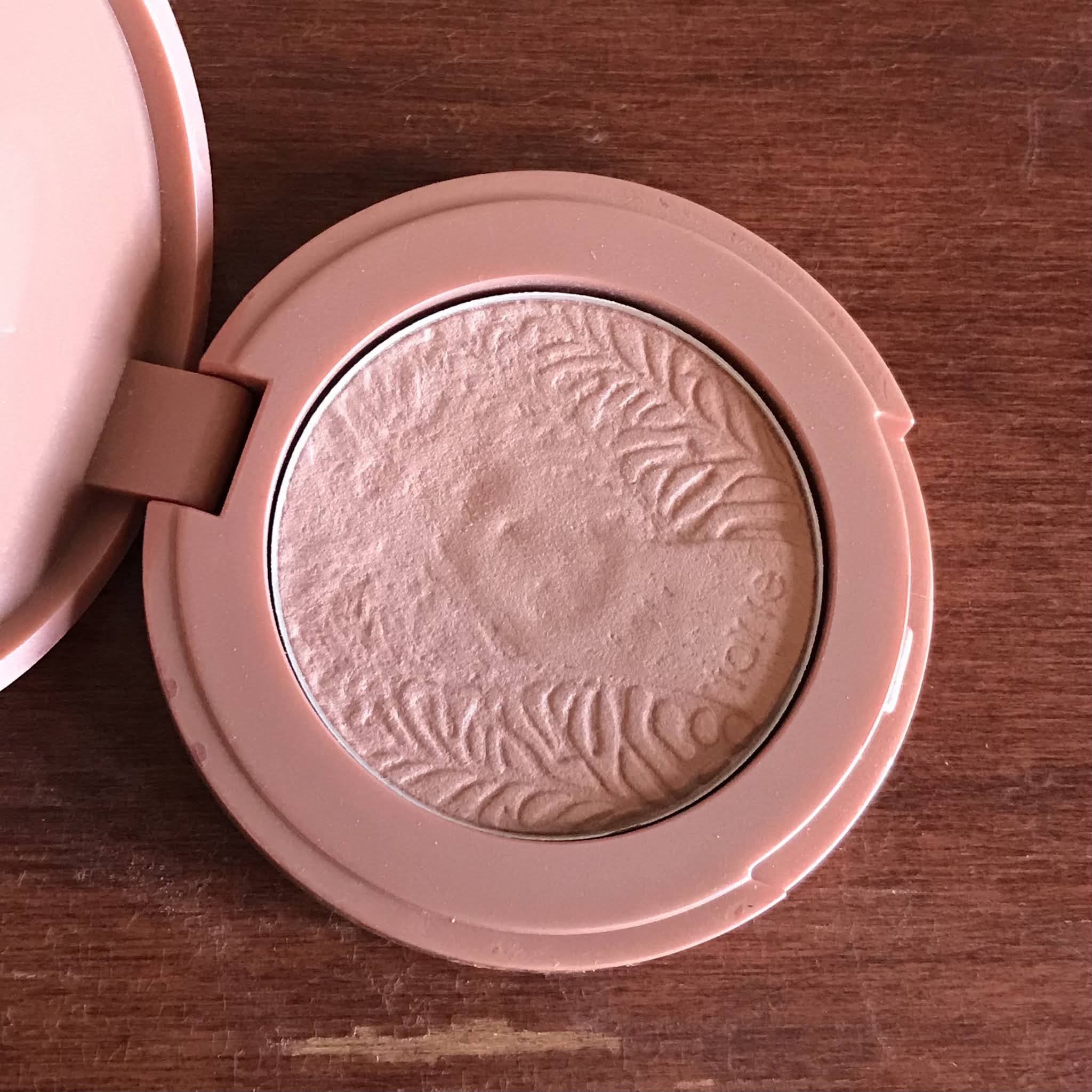 | The blush suffered severe shrinkage in transit and popped right out of the pan, so I had to smush it back in. |
