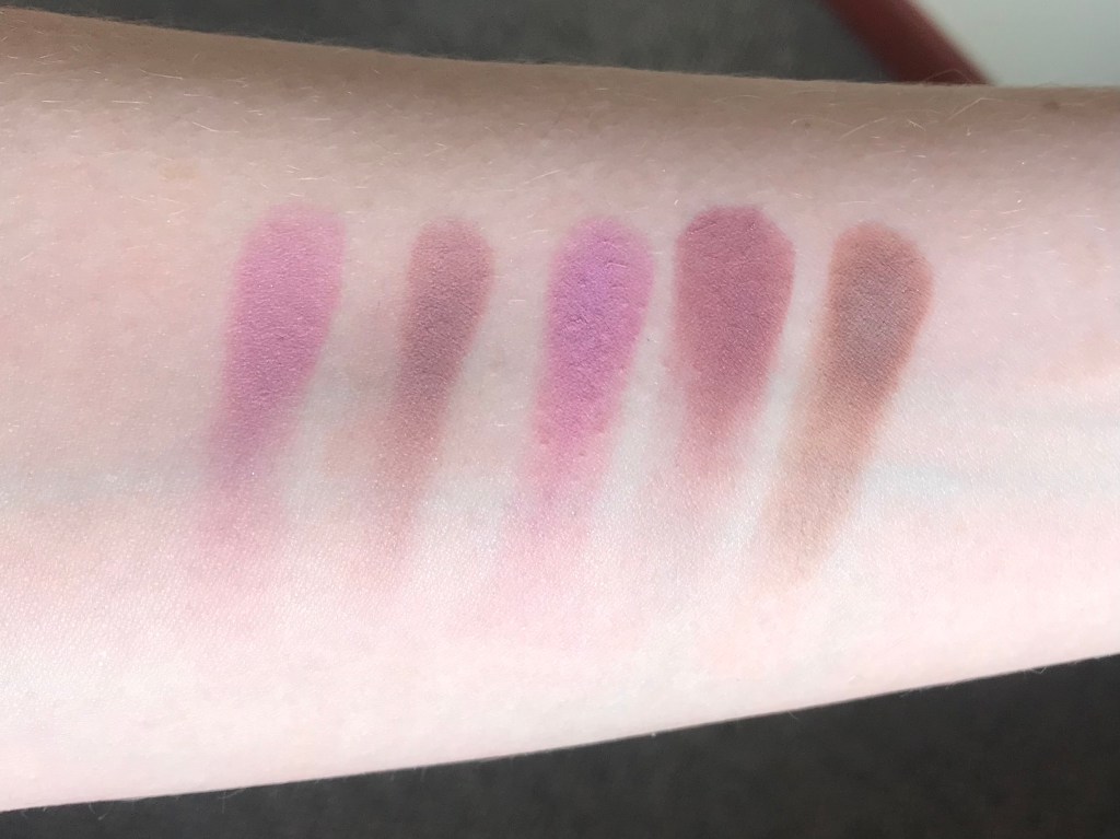 Dose of Colors Spaced Out (Marvelous Mauves palette), ABH Buon Fresco (Modern Renaissance), Imagine That, Dose of Colors Wishy Washy (Marvelous Mauves), ColourPop Python (That’s Taupe):